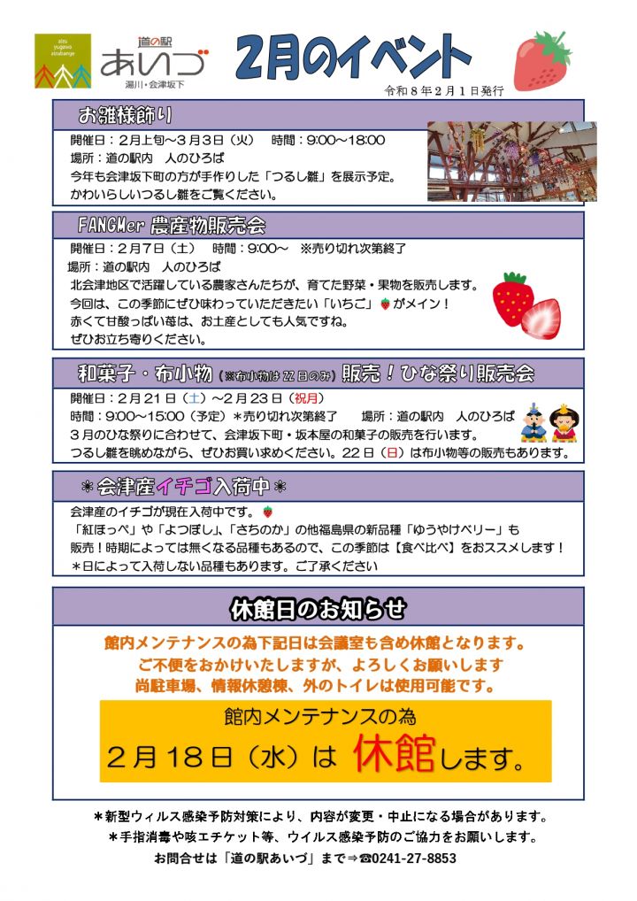 道の駅あいづ 2月のイベント情報