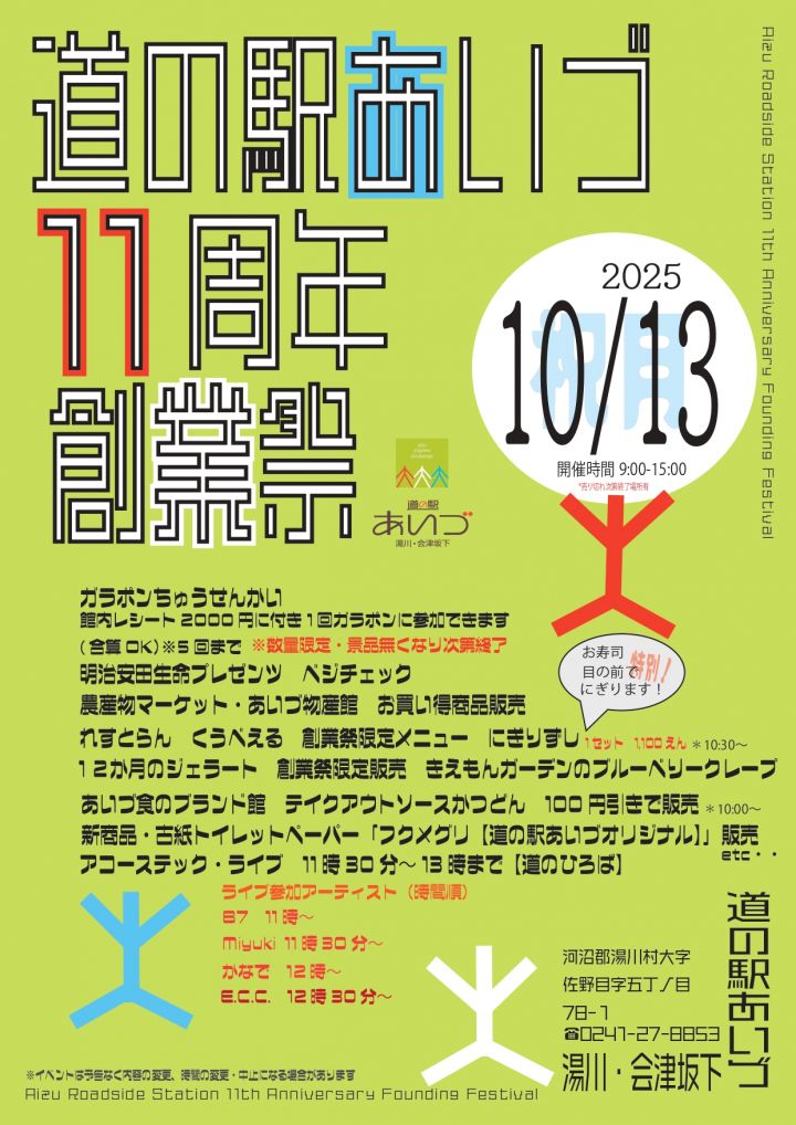 【終了しました】道の駅あいづは11周年目!今年は創業祭開催です。